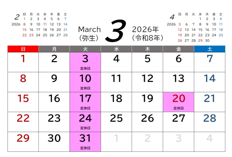 3月は通常営業となります。
